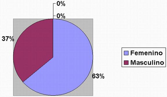 Al observar el gráfico No. 1 correspondiente a los grupos de edades, podemos apreciar que el mayor número de casos operados estuvo en las edades comprendidas entre 15 y 25 años con 140 pacientes para un 35%, seguidos de las edades de 26 a 35 años con 90 pacientes para un 22.5%. Es significativo señalar la aplicación de este proceder en las edades geriátricas de la vida con 70 pacientes para un 17.5%, correspondiente a los 65 y más años de edad. El sexo predominante fue el femenino con 254 pacientes para un total de 63.5%. (Gráfico No. 2)
